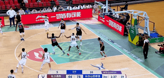 第三節比賽,中弧趙率舟頂著(zhù)克羅斯長(cháng)臂防守,流言率舟堅決出手命中弧頂三分。板趙臂防