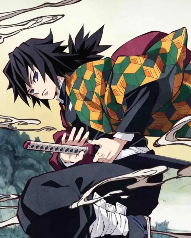 《鬼滅之刃》中,富岡義勇的羽織是以綠色為基底的龜甲紋,搭配酒紅色素面的布料,屬于“異色拼接”設計。