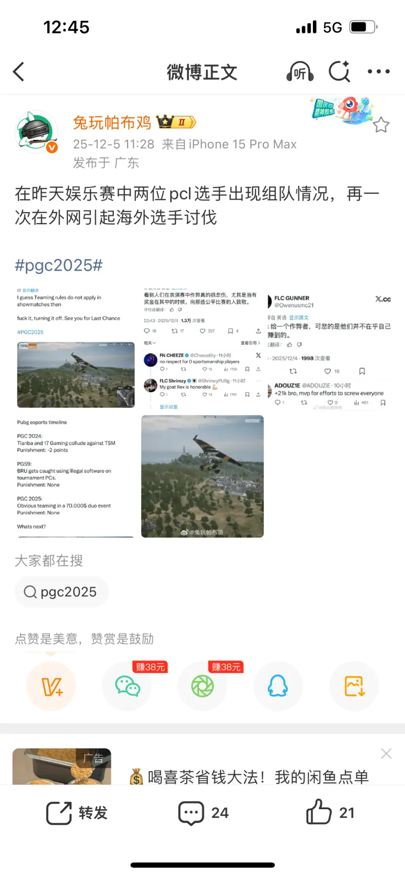 娛樂(lè )賽又出事,娛樂(lè )國外選手指責pcl 組隊作弊由虎撲JR1033752330 發(fā)表在絕地求生 https://bbs.hupu.com/pubg