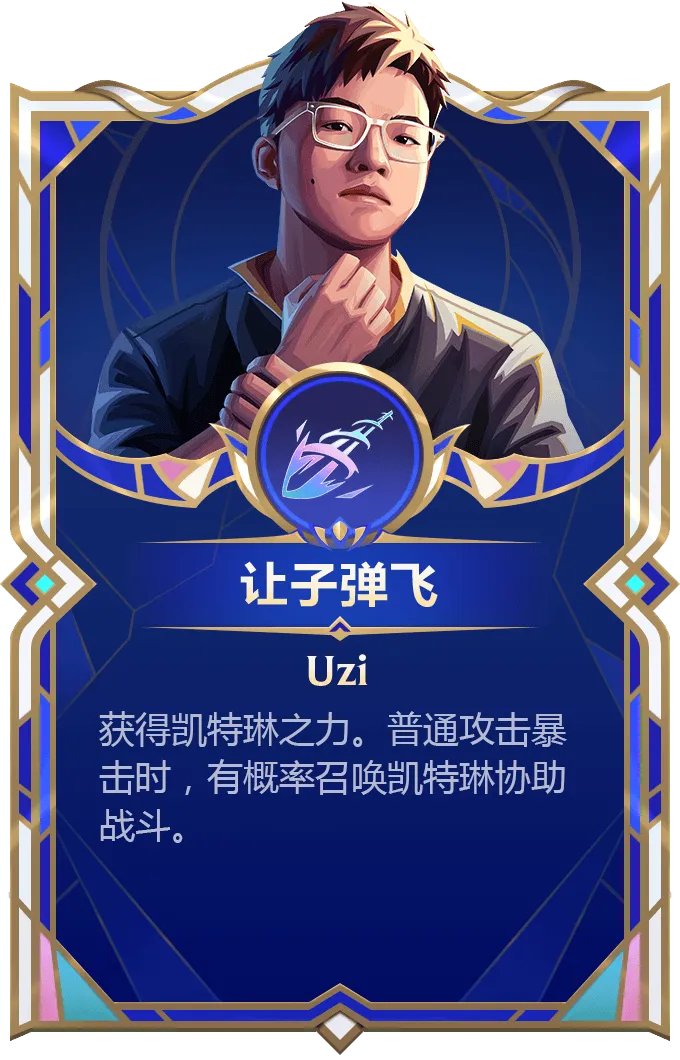 【Uzi——讓子彈飛】:獲得凱特琳之力,普通攻擊暴擊時(shí),有概率召喚凱特琳協(xié)助戰斗。