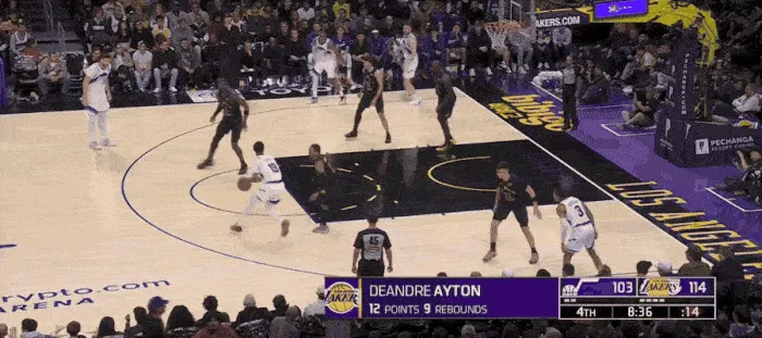 相較于東契奇,詹姆斯塊頭跟大,身體更強壯,更具有沖擊性。能夠快速壓縮對面的防守空間,而不給對方及時(shí)輪轉和防守溝通的機會(huì )。當然,艾頓順下速度也是中鋒中的翹楚。這個(gè)回合看似很輕松的打進(jìn),但湖人有時(shí)候就是需要這樣的“笨分”,這樣為東契奇的陣地減緩了很多的負擔!
