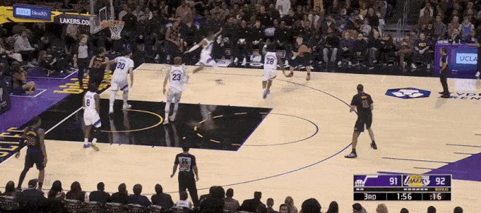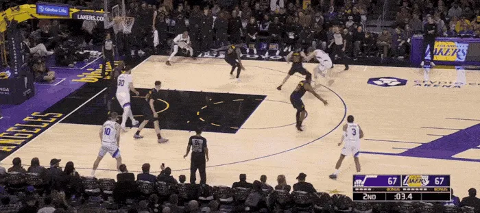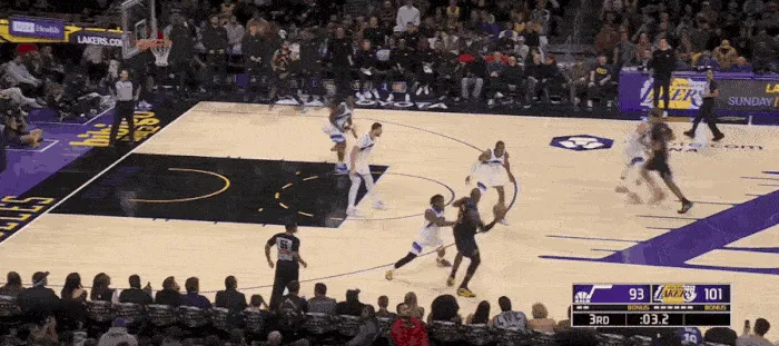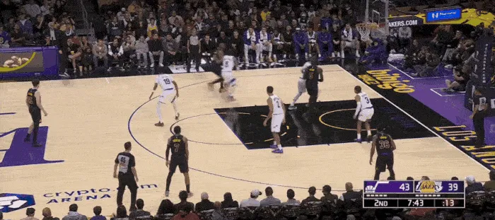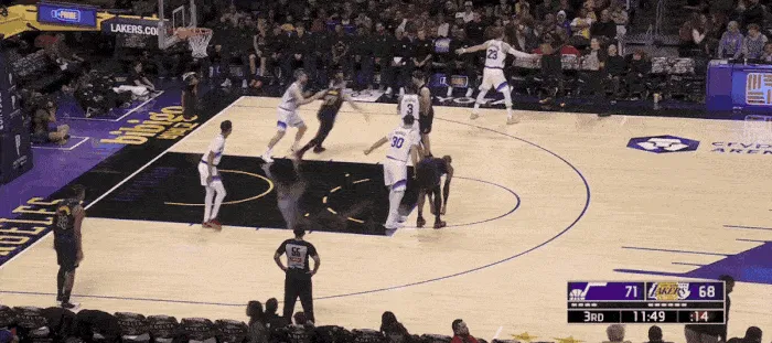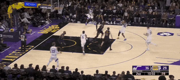 這球也很好的展示了詹姆斯快攻中的傳球能力和意識,他總能在攻守轉換中壓縮對面的防守陣型,然后給到合適位置的隊友終結。湖人是很需要這種攻守轉換的回合的。