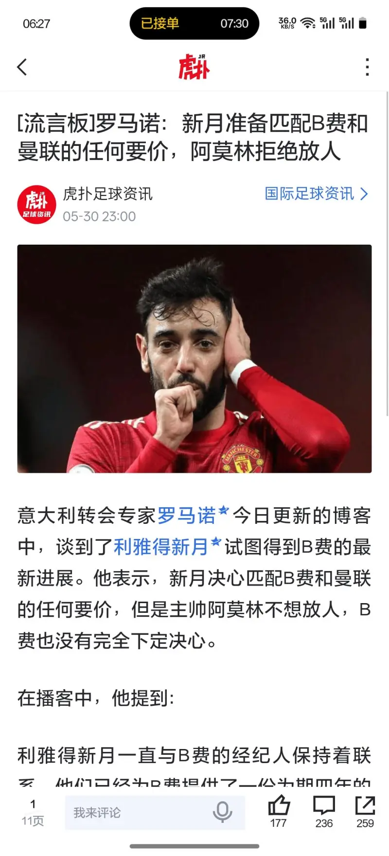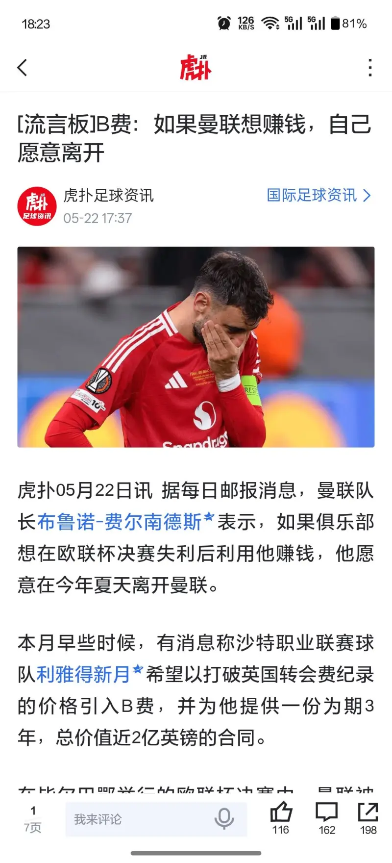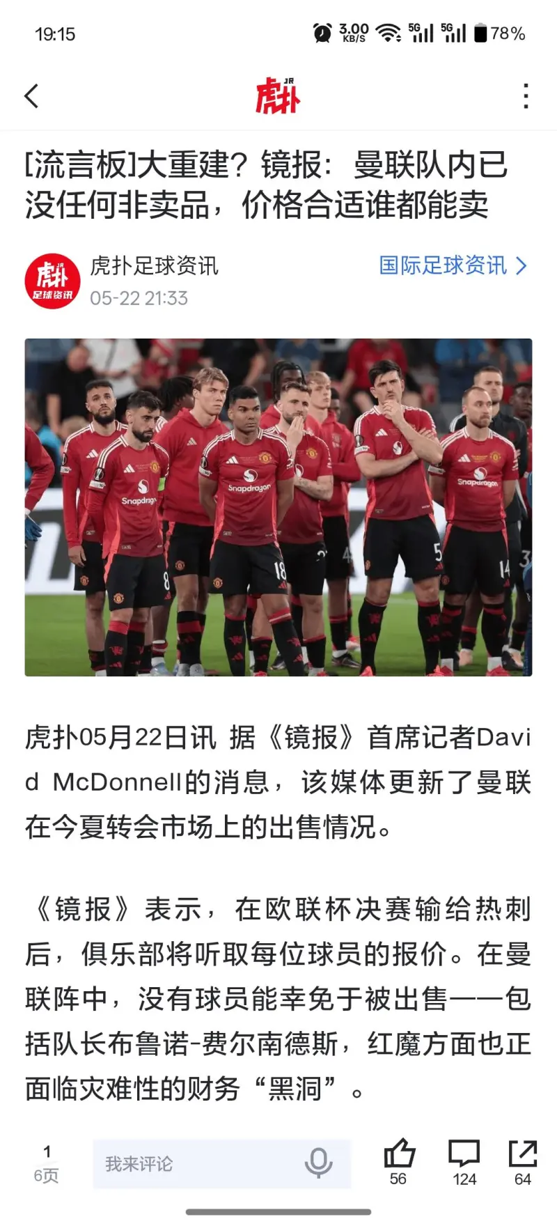 5月22日歐聯(lián)決賽輸了以后,B費接受采訪(fǎng)已經(jīng)暗示想走人,磅沒(méi)靠譜的賣(mài)明跟隊記者M(jìn)cDonnell也說(shuō)了包括B費全員擺上貨架沒(méi)有非賣(mài)品。