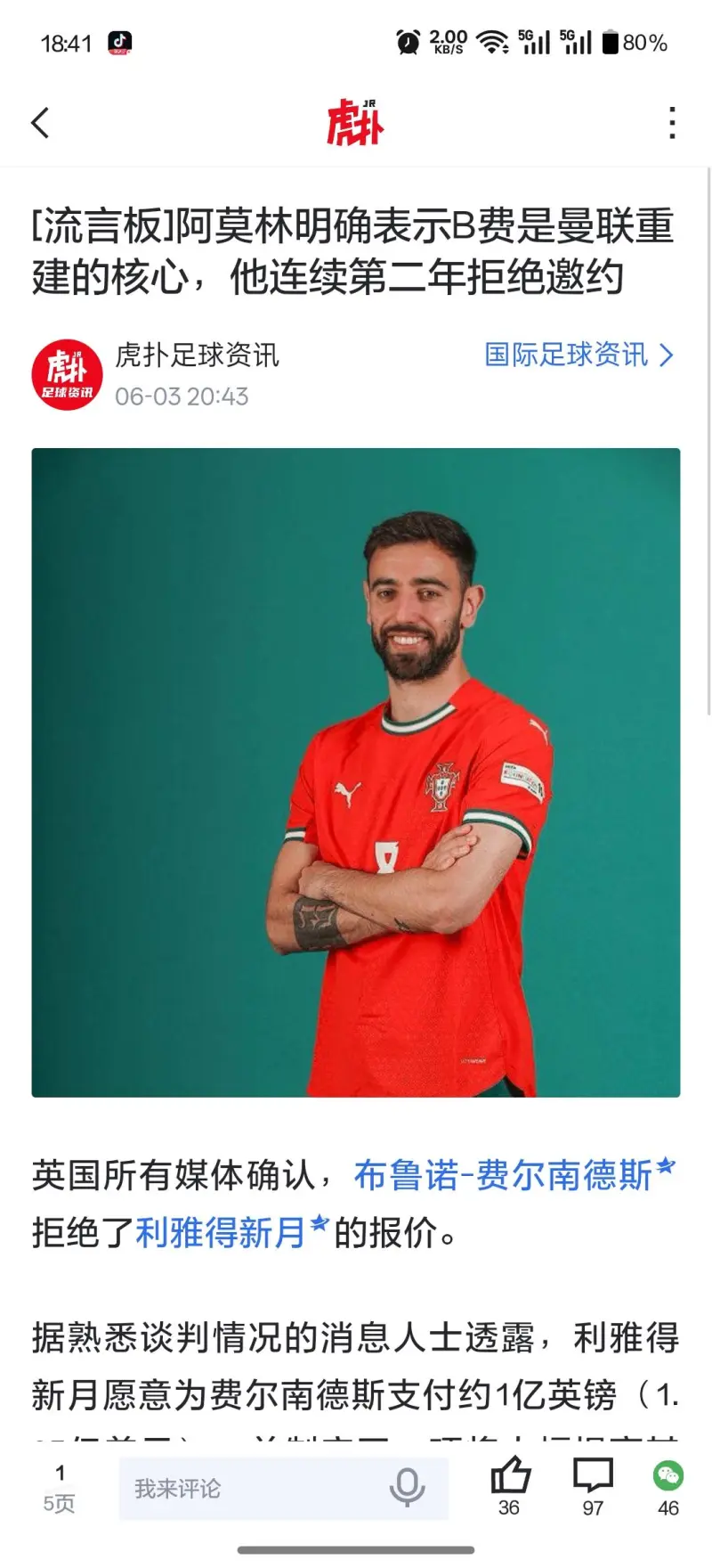 B費宣布愿意離隊后,阿莫林一直極力挽留+拒絕放人,曼聯(lián)不想肥皂劇也給B費設置了轉會(huì )截止日(6月3日),最終B費拒絕新月報價(jià)。