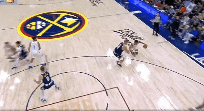 NBA常規賽,掘金對陣太陽(yáng)的上籃比賽正在進(jìn)行中。