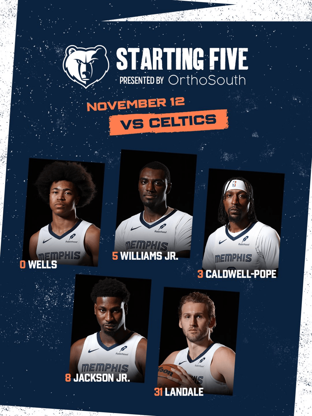灰熊首發(fā):韋爾斯、發(fā)韋威廉姆斯、威廉波普、杰克杰克遜、蘭代爾