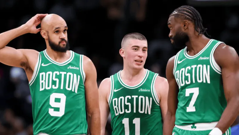 上半場(chǎng),凱爾特人球員德里克-懷特、佩頓-普里查德和杰倫-布朗三人累計20投只有2中,三分球10中0。