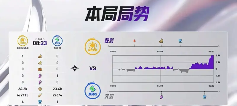 7分15秒,Hero找到機會(huì )果斷開(kāi)團,賽后雙方一換一