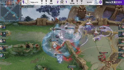 6分12秒,雙方在龍坑爆發(fā)摩擦,Hero打出一換三,妖刀敖隱二連擊破