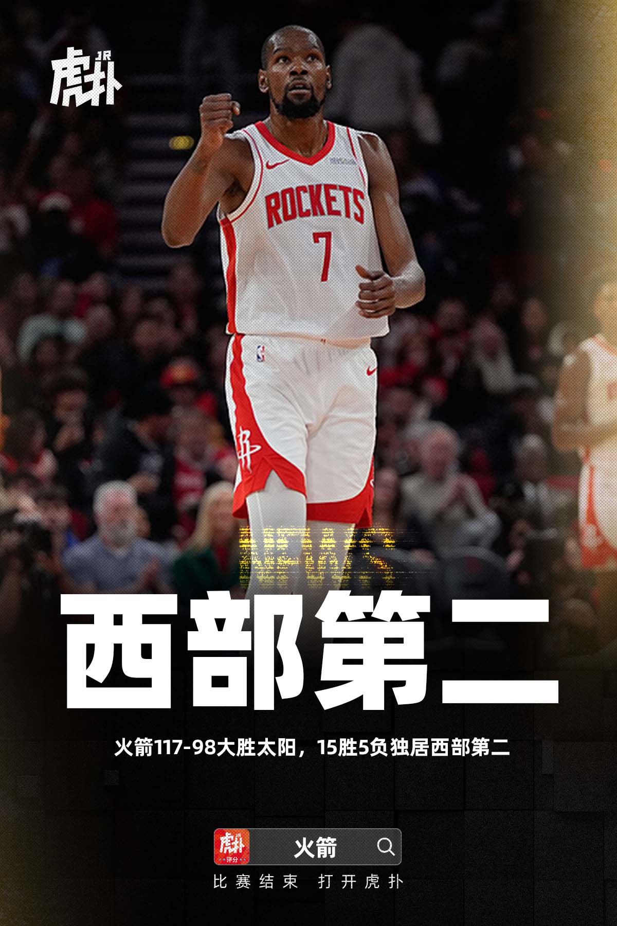 [流言板]火箭大勝太陽(yáng)戰績(jì)來(lái)到15勝5負,板火部第已超越湖人升至西部第二由虎撲籃球資訊 發(fā)表在籃球資訊 https://bbs.hupu.com/502