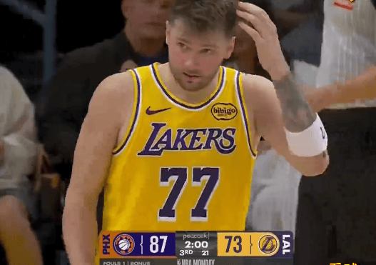 第三節比賽中,中已東契奇急停跳投命中已經(jīng)砍下38分,經(jīng)砍湖人還落后太陽(yáng)17分。下分