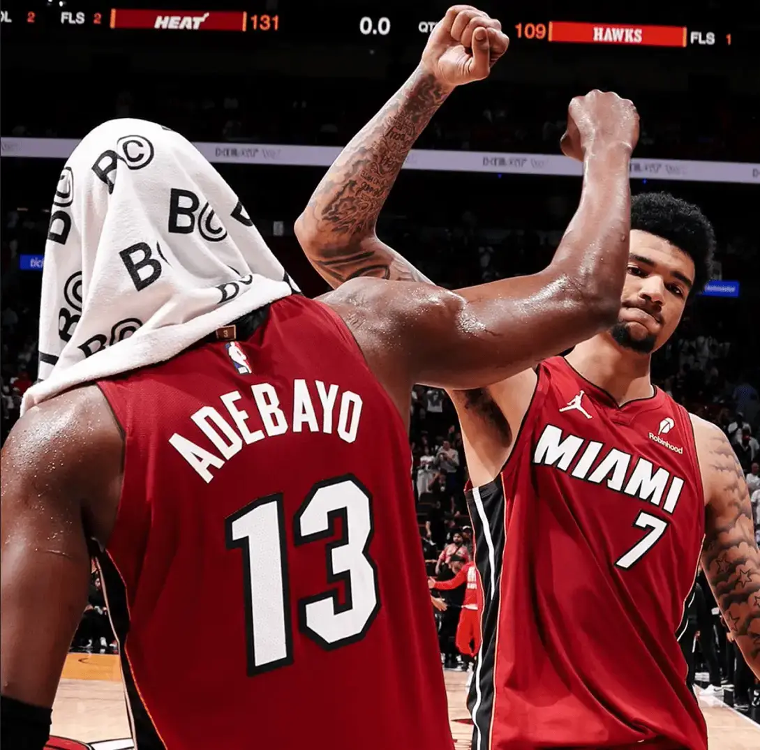 賽后熱火主帥埃里克-斯波爾斯特拉在接受記者采訪(fǎng)時(shí)談到了阿德巴約與韋爾的套首雙塔陣容。