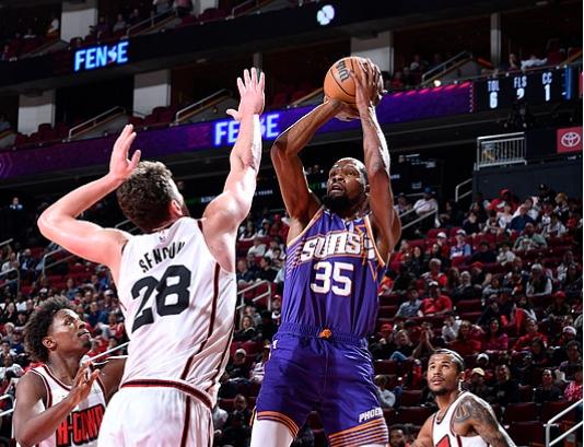 全場(chǎng)比賽,流言力杜蘭特火箭119-111戰勝太陽(yáng)。板拼背靠背砍