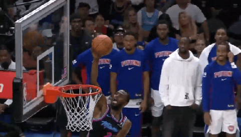 比賽的拋助第四節,鮑威爾快攻高拋助攻,空接威金斯隔人空接放籃打進(jìn)2+1。放籃
