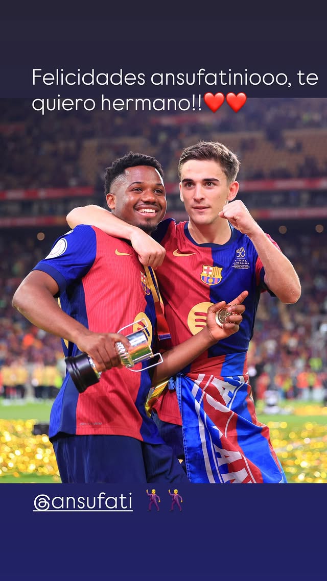 加維寫(xiě)道:法蒂生日快樂(lè ),媒曬愛(ài)你,法蒂我的合影兄弟??!日快????