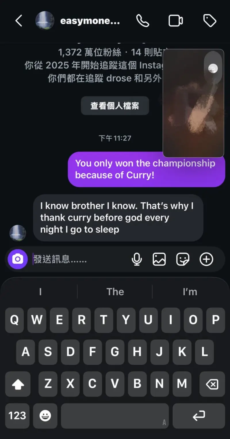 該網(wǎng)友私信杜蘭特,“你能獲得冠軍全靠庫里!”