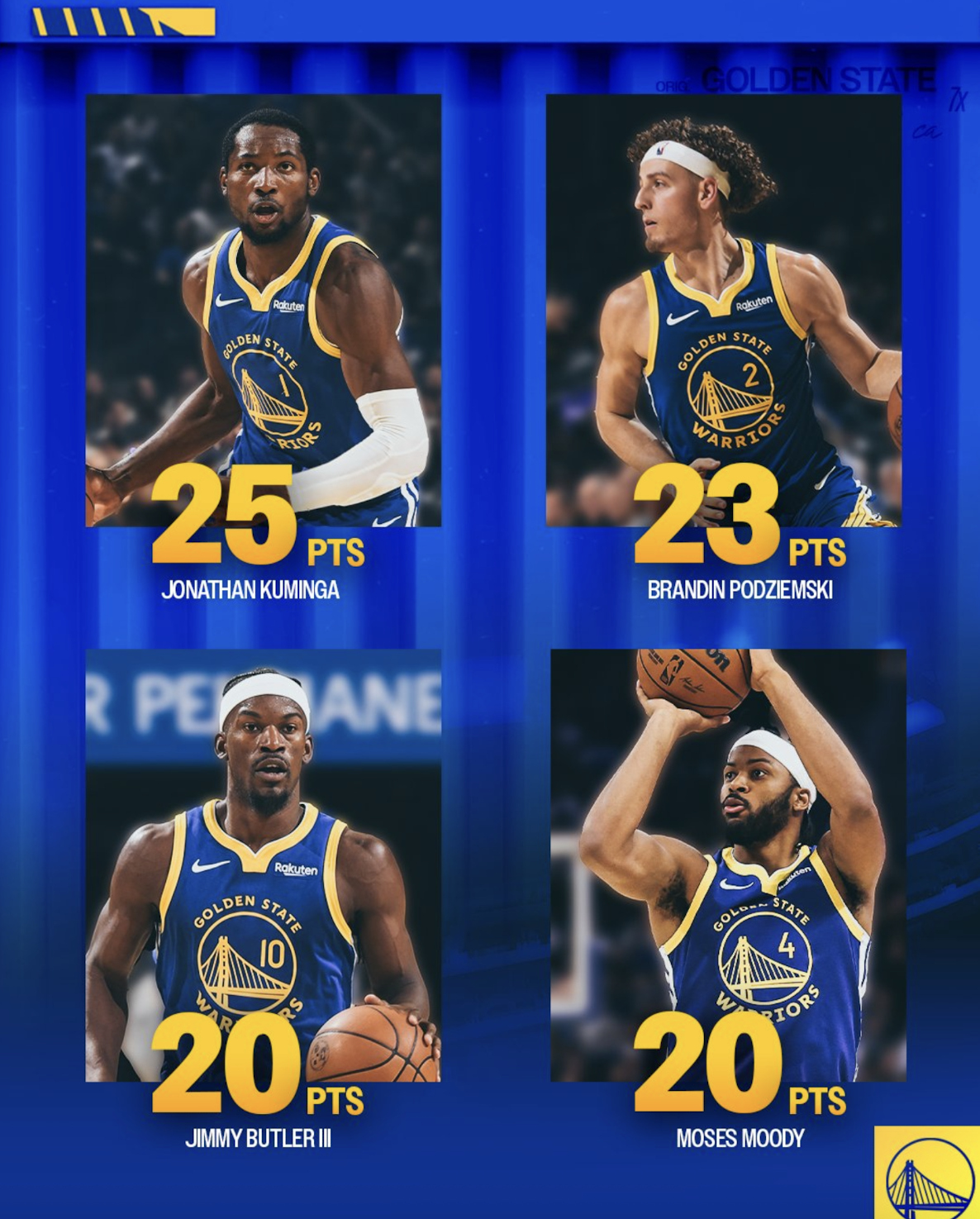 昨晚勇士有四名球員得分20+”,勇士官媒附文道。