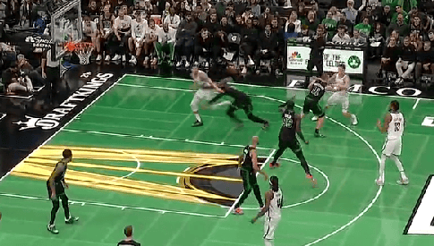 虎撲11月22日訊 NBA杯小組賽,籃網(wǎng)客場(chǎng)對陣凱爾特人的籃跳比賽正在進(jìn)行中。