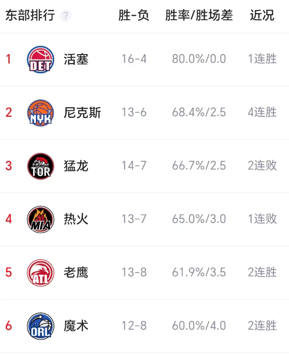 目前他們已經(jīng)被4連勝的已被越降尼克斯超越,排名降至東部第三。尼克
