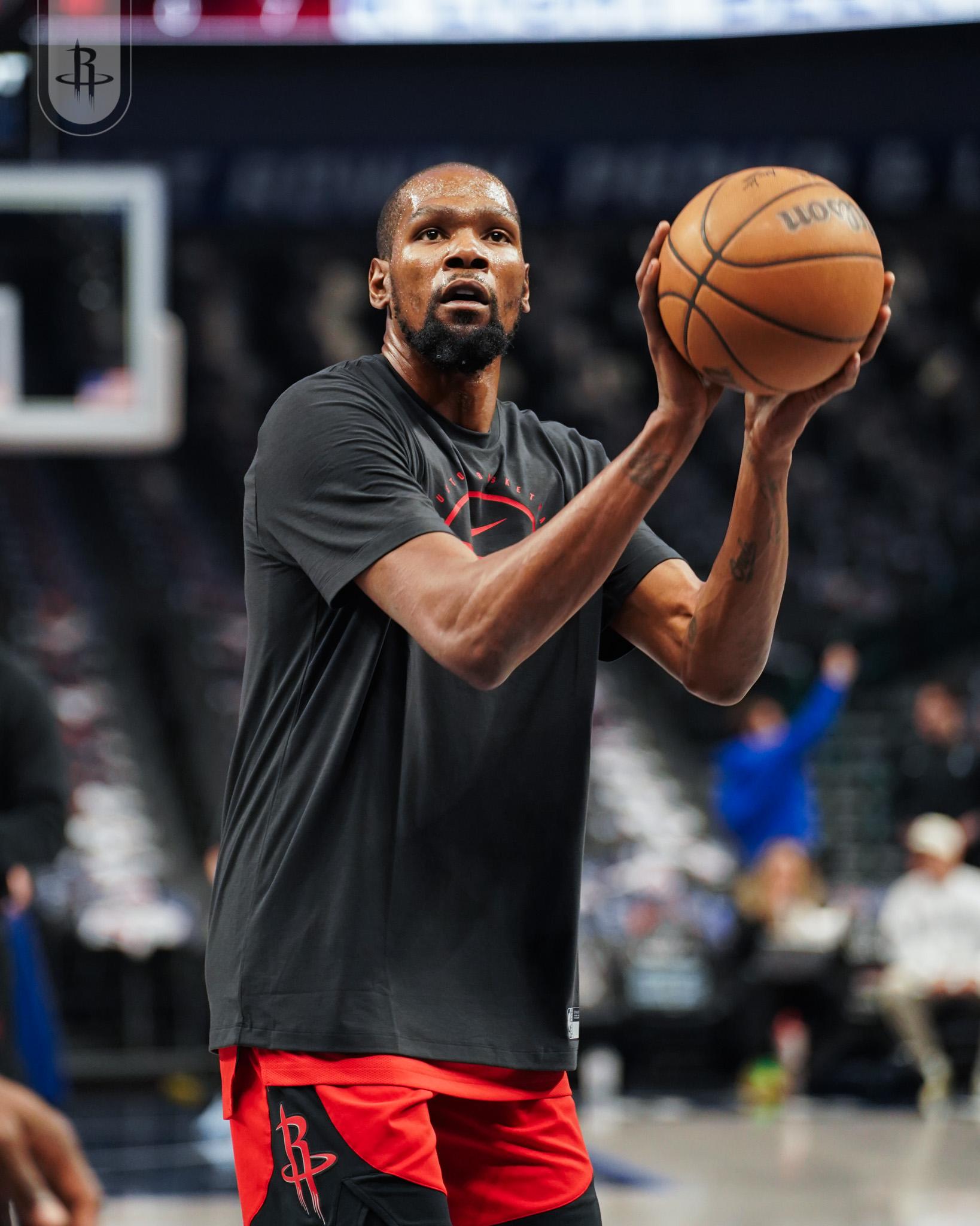 賽前,媒曬火箭社媒曬出火箭球員賽前熱身訓練的賽前神情瞬間,凱文-杜蘭特等球員出鏡。熱身