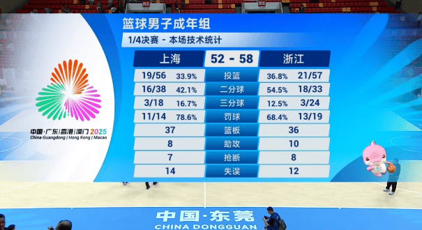 虎撲11月10日訊 全運會(huì )男籃四分之一決賽,浙江58-52戰勝上海晉級四強。板全