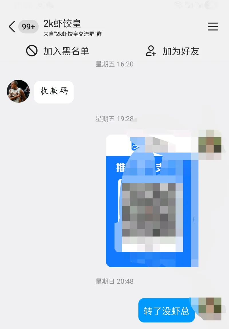 本人10月17號上周五觀(guān)看一個(gè)名叫2k蝦餃皇主播直播 期間抽中了一個(gè)福袋 直播期間該主播一直呼吁直播間里的觀(guān)眾說(shuō)積極參與福袋請一杯奶茶 然后我有幸在上周五中了一次福袋 也提前進(jìn)了群 然后當天群里私聊該主播 過(guò)了一整天才回復我說(shuō)二維碼 然后我馬上發(fā)了二維碼過(guò)去 人就莫名其妙消失了!我等了2天多才又只問(wèn)了一句話(huà)說(shuō)轉了嗎蝦總?該主播一直無(wú)視不回復不理人不說(shuō)話(huà)的播都 一直裝死 用福袋引流然后騙人 等到今天第5天了還是沒(méi)人回復不理人!期間我并沒(méi)有每天都發(fā)消息騷擾他給我兌換福袋,播都我隔幾天才問(wèn)一句話(huà)!播都真是播都無(wú)敵 你玩不起就別直播叫別人參與福袋!還在視頻評論區找借口說(shuō)漏了別人活不起了?說(shuō)別人拼好飯吃中毒了?你天天直播發(fā)視頻的播都 5到6天你都不登錄qq是不?不玩qq你叫別人加你的qq群干啥?你叫我qq群里聯(lián)系你干啥?這不純Nc嗎?既然你直播說(shuō)了中福袋一杯奶茶錢(qián) 存在即合理 你理所應當就應該給 因為這是你自己制定的規則 怎么還倒反天罡說(shuō)別人huo不起了?你意思是要那些中的粉絲添著(zhù)臉每天找你求著(zhù)你兌福袋?這些粉絲大多數都是學(xué)生多 你也要騙這些學(xué)生仔?然后我也不要了果斷給他拉黑。給兄弟們避雷就行!播都