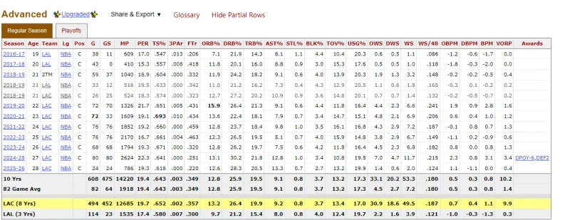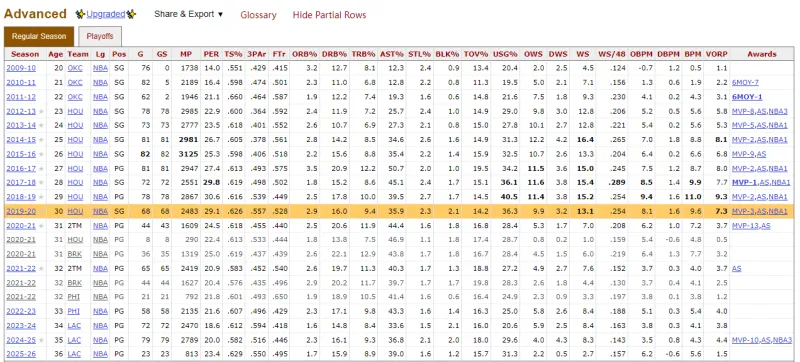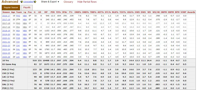 先直接貼首發(fā)高階數據,數據來(lái)源于www.basketball-reference.com