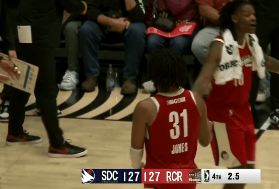 NBA發(fā)展聯(lián)盟G聯(lián)賽,撕裂之城混音對陣圣地亞哥快船的最后比賽正在進(jìn)行中。