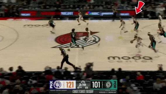 最后,看看楊瀚森在體能上還有精神上的提升,在至少兩次回防時(shí)幾乎是狂奔的狀態(tài),步子邁開(kāi)了,我看到了他很投入。以下是我截取的2個(gè)比賽鏡頭。