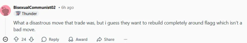 -(24贊)那筆交易真是災難性的舉動(dòng),但我猜他們想圍繞弗拉格徹底重建,這也不失為一個(gè)好主意。
