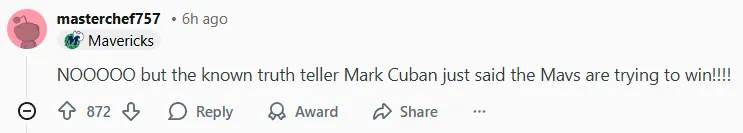 -(872贊)沒(méi)有,但眾所周知的實(shí)話(huà)實(shí)說(shuō)者馬克-庫班剛剛說(shuō),獨行俠正在努力贏(yíng)球!!!!!