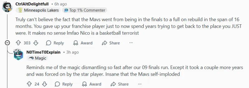 -(303贊)我真的不敢相信,獨行俠在短短16個(gè)月的時(shí)間里,就從總決賽變成了全面重建。你放棄了你的建隊基石,現在卻要花費數年時(shí)間來(lái)試圖回到你曾經(jīng)的位置。尼科是個(gè)籃球恐怖分子