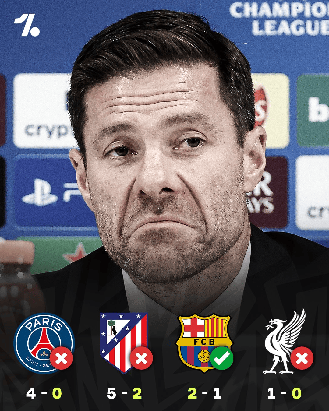 根據One Football的皇馬統計,阿隆索執教的場(chǎng)硬皇馬,在四場(chǎng)強強對話(huà)中有三場(chǎng)敗北: