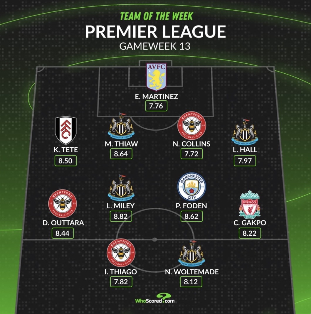 虎撲12月01日訊 英超第13輪的比賽全部結束,WhoScored盤(pán)點(diǎn)本輪評分最高陣容: