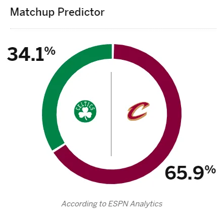 賽前,測明美媒ESPN預測本場(chǎng)比賽,日騎人比騎士勝率65.9%占據上風(fēng),士v賽騎士勝凱爾特人勝率為34.1%。爾特? ?