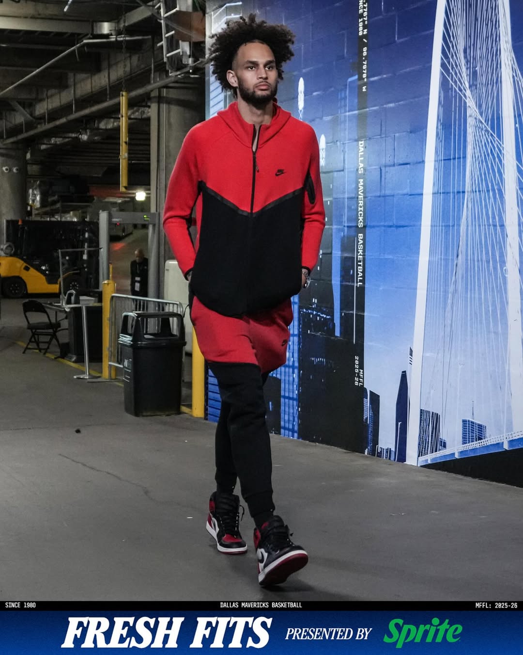 [流言板]獨行俠社媒分享今日球員穿搭照,萊夫利全身經(jīng)典紅黑配色