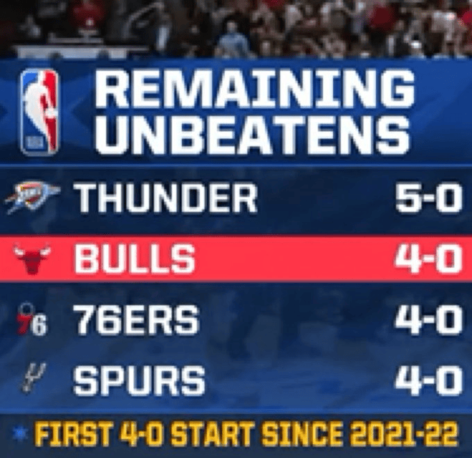 此役過(guò)后,公牛聯(lián)盟目前保持不敗的人馬球隊仍是之前的4支: