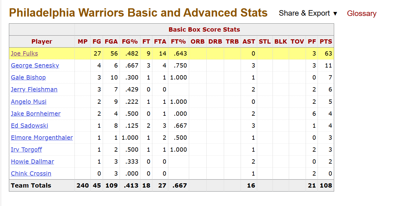 1949年的今天,費城勇士隊108-87擊敗印第安納波利斯噴氣機隊。板年